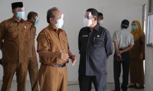 Labuhanbatu, POL | Pejabat sementara Bupati Kabupaten Labuhanbatu Drs. Mhd. Fitryus SH.MSP didampingi Asisten 1 Sarimpunan Ritonga MPd, Direktur RSUD Rantauprapat dr. Syafril Harahap Sp.B meninjau ruang isolasi pasien Covid-19 di RSUD Rantauprapat dan Wisma atlet jalan Binaraga Kecamatan Rantau Utara, Senin (2/11/2020).