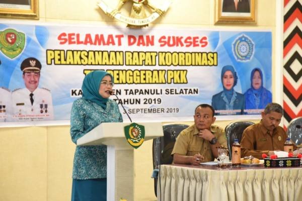 Tapsel, POL | Tim Penggerak PKK Kecamatan harus mampu mensukseskan 10 program PKK.  Hal itu disampaikan Ketua TP. PKK Kabupaten Tapsel Ny. Syaufia Lina Syahrul pada acara Pelaksanaan Rapat Koordinasi Tim Penggerak PKK Kabupaten Tapanuli Selatan Tahun 2019, di Aula Sarasi II Kantor Bupati Tapsel, Sipirok, (3/9/2019) lalu.