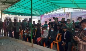 Samosir, POL | Pelaksana Harian (Plh) Bupati Samosir, Jabiat Sagala menghadiri peletakan batu pertama pembangunan Tugu Sagala Raja di Gindolok, Sagala, Kecamatan Sianjur Mulamula Kabupaten Samosir, Kamis (4/3/2021).