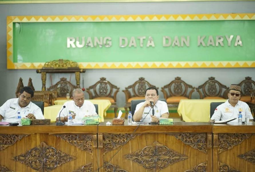 Labuhanbatu, POL | Plh. Sekdakab Labuhanbatu Ir. Hasan Heri Rambe memimpin rapat koordinasi pemerintahan dan pembangunan bersama para Asisten, pimpinan OPD, Kabag, Kaban, Camat, Direktur RSUD dan Direktur PUDAM di ruang rapat data dan karya kantor Bupati Labuhanbatu jalan SM.Raja Rantauprapat, Kecamatan Rantau Selatan, Rabu (26/04/2023).