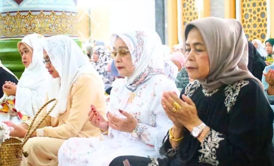 Labuhanbatu, POL | Pelaksana Tugas (Plt) Bupati Labuhanbatu Hj. Ellya Rosa Siregar, S.Pd.,MM melaksanakan sholat ldul Fitri 1 Syawal 1445 Hijriyah bersama warga di Masjid Raya Al Ikhlas Ujung Bandar, Kecamatan Rantau Selatan, Rabu (10/4/2024).