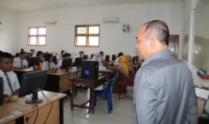 Rantauprapat, POL | Pelaksana tugas Bupati Labuhanbatu H Andi Suhaimi Dalimunthe MT meninjau pelaksanaan Ujian Nasional Berbasis Komputer (UNBK) di sejumlah Sekolah Lanjutan Tingkat Atas (SLTA), Senin (1/4) di Rantauprapat.