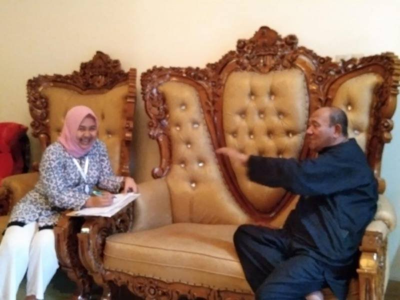 Petugas BPS Medan melakukan wawancara kepada Syah Afandin untuk mencatat data sosial ekonomi.