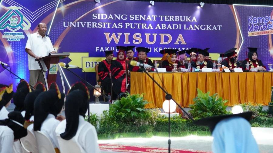 “Hari ini kita dapat hadir bersama dalam acara wisuda Universitas Putra Abadi Langkat Tahun 2022 2023 D3 keperawatan D3 Kebidanan S1 keperawatan dan profesi Ners,” ujarnya.