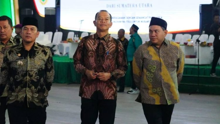 Langkat, POL | Plt Bupati Langkat H.Syah Afandin SH diwakili Sekdakab Langkat Amril,S.Sos,M.AP didampingi Kabag Perekonomian Winanda Akbar, S.STP menghadiri kegiatan pengambilan Ikrar JBMI “Merajut Keberagaman Nusantara dengan Semangat Falsafah Pancasila dan Spirit Dalihan Na Tolu”, bertempat di Gedung Serbaguna Pemprovsu Medan, Kamis (19/10/2023).
