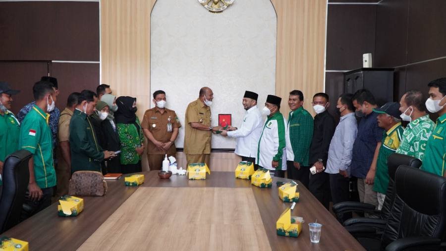 Stabat, POL | Pelaksana tugas Bupati Langkat H Syah Afandin SH, menerima audiensi Dewan Pimpinan Cabang Partai Bulan Bintang ( DPC PBB) Kabupaten Langkat, di Ruang Rapat Wakil Bupati Langkat, Stabat, Senin (7/3/2022).