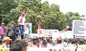Samosir(, POL | Ratusan massa yang tergabung dalam Aliansi Pemuda dan Masyarakat Peduli Demokrasi (APMPD) Samosir unjuk rasa ke Kantor KPU dan Bawaslu Samosir, Kamis (17/9/2020 ).