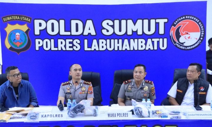 Rantauprapat, POL | Kapolres Labuhanbatu AKBP Wahyu Endrajaya, S.I.K., M.Si dan dihadiri Wakapolres Labuhanbatu Kompol PS. Simbolon, S.H, Kasat Reskrim AKP Jihad Fajar Balman, S.Tr.K., S.I.K., Kasat Narkoba AKP melakukan  Hardiyanto, SH. menggelar Press Release kinerja Polres Labuhanbatu terkhusus Satuan Narkoba dan Satuan Reskrim dari Januari hingga April 2026.