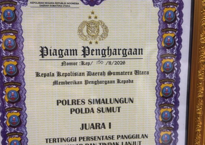 Penghargaan yang tertuang dalam Piagam Penghargaan Nomor: Kep/150/II/2026 yang ditandatangani langsung oleh Kapolda Sumatera Utara ini diberikan atas keberhasilan Polres Simalungun dalam melayani masyarakat melalui Call Center 110 sepanjang tahun 2025.
