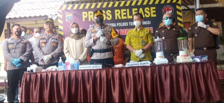 Tebingtinggi, POL | Polres Tebingtinggi memusnahkan barab bukti narkoba jenis sabu sebanyak 498,61 gram (netto) dan 1.875 butir pil ekstasi dengan cara diblender di halaman Mapolres Jalan Pahlawan Kota Tebingtinggi, Selasa (4/10/2022).