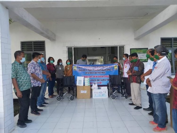 Toba, POL | Guna memutus rantai penyebaran Covit 19, Punguan Pomparan Raja Sitonggor Dohot Boruna di perantauan dan bona pasogit untuk kali kedua kembali menyerahkan bantuan Alat Pelindung Diri (APD) untuk tenaga medis ke Rumah Sakit Umum (RSUD) Porsea, Jumat (8/1/2021).