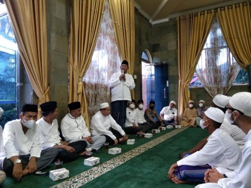 Langkat, POL | Pelaksana Tugas (Plt) Bupati Langkat H Syah Afandin SH sholat maghrib berjama’ah di Pondok Pesantren (Ponpes) Khaymah Al Mufaruddin, Jalan Masjid Azizi No.36 Pekan Tanjung Pura, Minggu (17/4/2022).