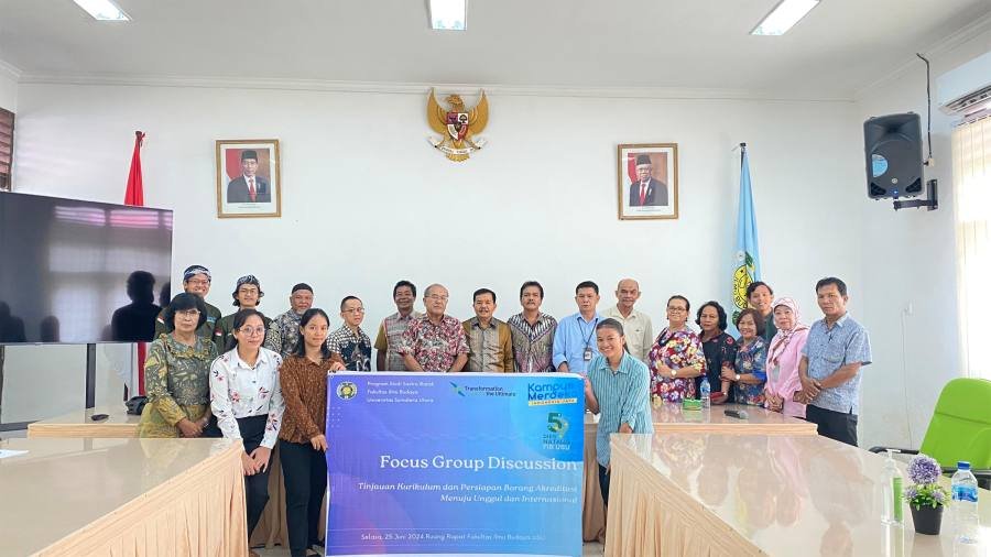 Medan, POL | Fakultas Ilmu Budaya Program Studi Sastra Batak Universitas Sumatera Utara, Selasa (25/6) di kampus FIB USU mengadakan kegiatan Focus Group Discussion (FGD) dengan topik “Tinjauan Kuriklum dan Persiapan Penyusunan Borang Akreditasi Menuju Unggul dan Internasional”.