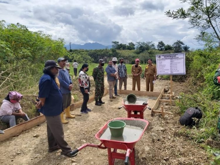 Toba, POL | Guna memperlancar akses petani kelokasi pertanian, pemerintah desa Parbagasan Janjimatogu, Kecamatan Uluan Kabupaten Toba, membangun Infrastruktur jalan sekali gus peletakan batu pertama pembangunan jalan pertanian.