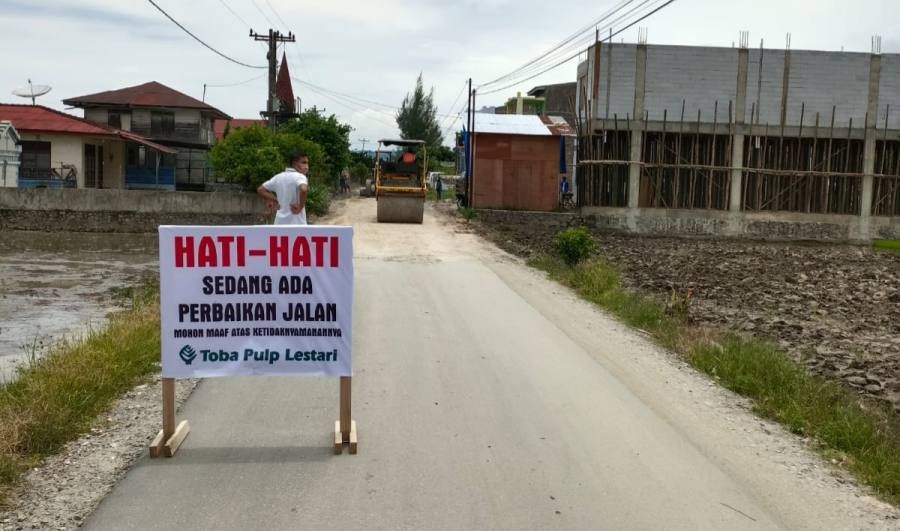 Toba, POL | PT. Toba Pulp Lestari melakukan perbaikan ruas jalan Porsea Siregar yang telah berlobang lobang selama ini. Kondisi kerusakan tersebut membuat pengguna jalan terganggu ketika musim hujan, tepatnya jalan ini di Desa Patane 4 Kecamatan Porsea Kabupaten Toba.