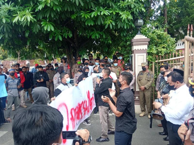 Koordinator aksi, Dimas Muhammad Yezar menyampaikan tuntutan antara lain, menolak kenaikan harga BBM, menolak kenaikan harga bahan-bahan pokok, menolak kenaikan PPN 11 %, menolak penundaan Pemilu yang merupakan tindakan inskonstitusional dan menolak Presiden Jokowi 3 periode.sebutnya disambut aplus peserta demo.