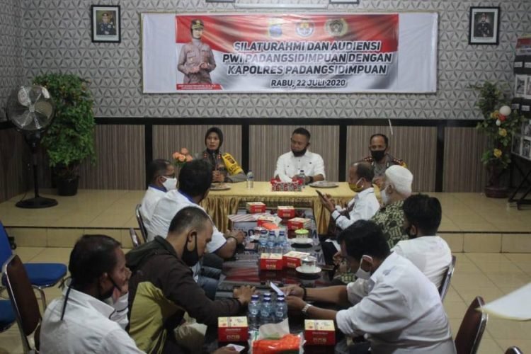 Padangsidimpuan, POL | Pengurus dan anggota Persatuan Wartawan Indonesia (PWI) Tapanuli bagian selatan (Tabagsel) melakukan audensi ke Polres Padangsidimpuan bertempat di aula Endra Dharma Laksana Polres Padangsidimpuan, Rabu  (22/7/2020).