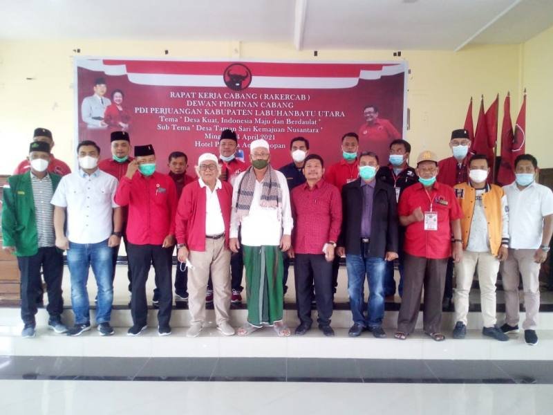 Rakercab PDI-Perjuangan Kabupaten Labuhanbatu Utara ini berlangsung Minggu (4/4/2021) di Hotel Pasirma Aek Kanopan ini dibuka Pengurus DPD PDI-Perjuangan Propinsi Sumatera Utara Jumiran Abdi MM didampingi Pengurus DPD lainnya Alamsyah Hamdani SH.