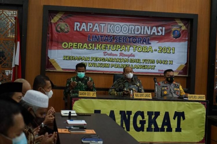 Langkat, POL | Mendekati idul fitri 1442 Hijriah, Polres Langkat menggelar Rapat Koordinasi (Rakor) lintas sektoral oprasi ketupat toba 2021, di Aula Wirasatya Polres Langkat, Senin (26/4/2021).