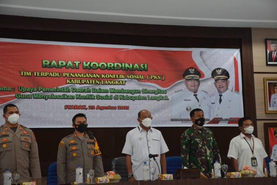 Langkat, POL | Pemerintah Kabupaten Langkat menggelar rapat koordinasi (Rakor) tim terpadu penanganan konflik sosial Kabupaten Langkat, di Ruang Pola Kantor Bupati Langkat, Stabat, Rabu (25/8/2021).
