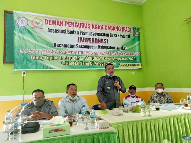 Rapat bulanan lintas BPD dibawah nauangan PAC ABPEDNAS Se-Kecamatan Secanggang kali ini, bertemakan (topik) “Perubahan APBDes Tahun 2021”. Perwakilan pengurus BPD yang hadir meliputi Ketua BPD, Wakil Ketua BPD dan Sekretaris BPD.