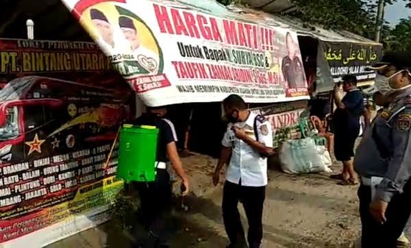 Kisaran, POL | Dalam rangka meredam penyebaran virus Corona di tempat – tempat yang menjadi mobilitas umum, Dinas Perhubungan Kabupaten Asahan melakukan penyemprotan desinfektan di sejumlah loket Bus Antar Kota Antar Provinsi (AKAP) yang ada di sepanjang jalan Jendral Ahmad Yani by pass Kisaran, Kamis (16/04/2020).