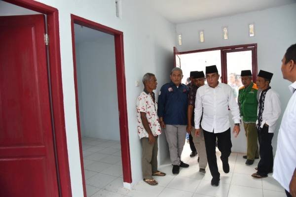 Setelah menyapa para warga, Gubernur bersama rombongan pun melihat satu per satu rumah dan sejumlah fasilitas yang dibangun menggunakan APBD Pemprov Sumut. Gubernur juga melihat bagian dalam rumah permanen berlantai keramik tersebut.