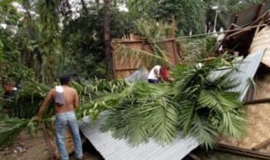 Batu Bara, perjuanganonline | Hujan deras disertai angin kencang yang melanda Dusun V, Desa Sumber Padi, Kecamatan Bara, Kabupaten Batu Bara mengakibatkan sebatang pohon kelapa sawit tumbang dan menimpa kediaman Joniardi (30), Senin (8/10) dinihari.