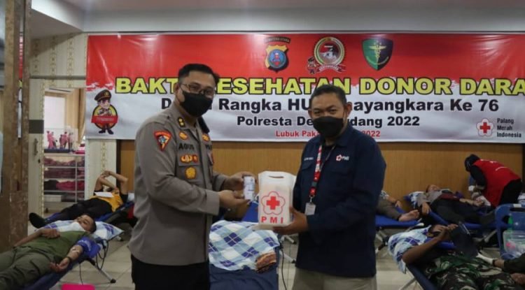 Deli Serdang, POL | Menyambut Hari Ulang Tahun (HUT) Bhayangkara ke-76 Tahun, Polresta Deli Serdang gelar kegiatan Bakti kesehatan donor darah dengan menggandeng Unit Donor Darah Palang Merah Indonesia (PMI) Kab. Deli Serdang yang digelar di Aula Tri Brata Polresta Deli Serdang, Selasa (07/06/2022).