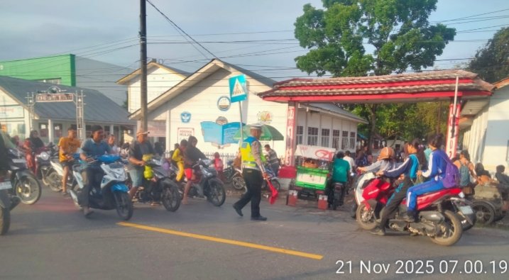 Rantauprapat, POL | Satuan Lalu Lintas Turjawali Pos Lantas Sigambal Polres Labuhanbatu melaksanakan kegiatan Pengaturan Lalu Lintas (Strong Point) pada Jumat, 21 November 2025, di Jalan HM. Said Sigambal, tepatnya dekat Simpang Puskesmas, Kelurahan Perdamean, Kecamatan Rantau Selatan, Kabupaten Labuhanbatu.