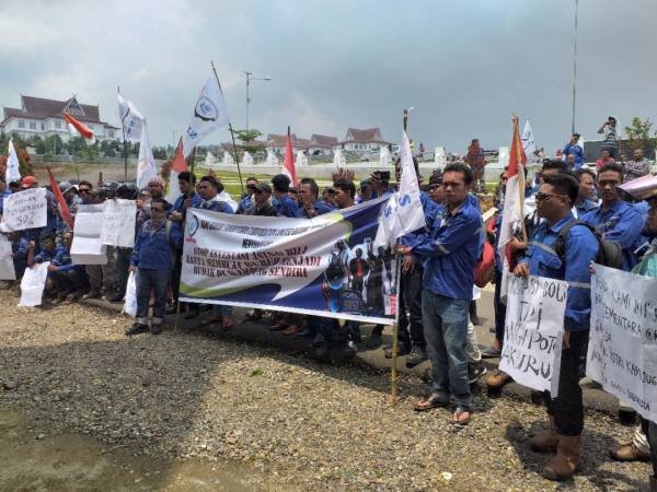 Tapsel, POL | Ratusan buruh PT.SCL maupun yang tergabung pada Serikat Buruh Seluruh Indonesia (SBSI) Tapanuli Selatan (Tapsel) dan SBSI Sumut berunjuk rasa ke Kantor PT Sinohydro Corporation Limited (SCL) anak perusahaan PT North Sumatera Hydro Energy (NSHE) yang menangani pembangunan PLTA Sipirok, Marancar dan Batangtoru (Simarboru) di Marancar, Kamis (10/10/2019).
