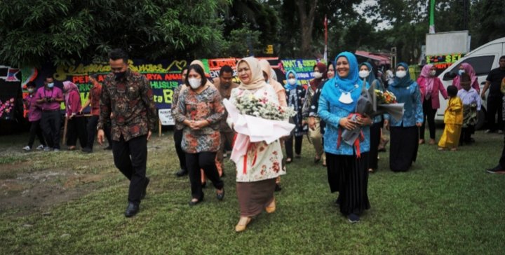 Langkat, POL | Pelaksana Tugas (Plt) Ketua TP PKK Kabupaten Langkat, Hj Endang Kurniasih Syah Afandin bersama Ketua TP PKK Provsu, Hj Nawal Edi Rahmayadi hadiri pentas seni karya anak berkebutuhan khusus dan Bazar Ibu Dharma Wanita Cabdisdik Stabat, di SDLB Negeri No.057704 Stabat, Kamis (8/9/2022).