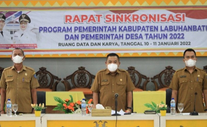 Labuhanbatu, POL | Dinas Pemberdayaan Masyarakat dan Desa (PMD) Kabupaten Labuhanbatu, menggelar rapat Sinkronisasi Program antara Pemerintah Kabupaten (Pemkab) dengan Pemerintah Desa Tahun 2022, Senin (10/01/2022) di ruang data dan Karya Kantor Bupati Labuhanbatu.