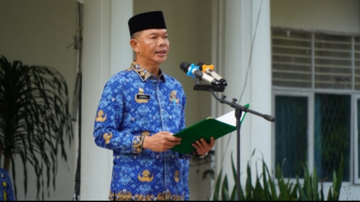 Stabat, POL | Sekretaris Daerah (Sekda) Kabupaten Langkat, Amril, S.Sos, M.AP, bertindak sebagai pembina apel gabungan Aparatur Sipil Negara (ASN) di lingkungan Pemerintah Kabupaten Langkat dalam rangka memperingati Hari Kesadaran Nasional. Apel digelar di halaman kantor Bupati Langkat, pada Senin (17/2/2025) dan dihadiri sejumlah pejabat eselon II, III, IV, serta ASN di lingkungan Pemkab Langkat.