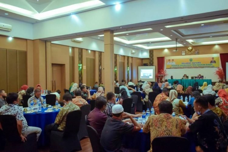 Padangsidimpuan, POL | Sekretaris Daerah (Sekda) Kota Padangsidimpuan, H. Letnan Dalimunthe, S.Km, M.Kes membuka sosialisasi tata naskah dinas di lingkungan Pemkot Padangsidimpuan, Kamis (25/03/2021) di Hall Emerald Hotel Mega Permata Padangsidimpuan.