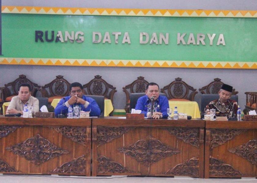 Labuhanbatu, POL | Sekretaris Daerah (Sekda) Kabupaten Labuhanbatu Ir. Hasan Heri Rambe memimpin rapat pemaparan rancangan pelaksanaan Hari Ulang Tahun Ke-78 Pemerintahan Kabupaten Labuhanbatu di Ruang Data dan Karya Kantor Bupati, Kamis (05/10/2023).