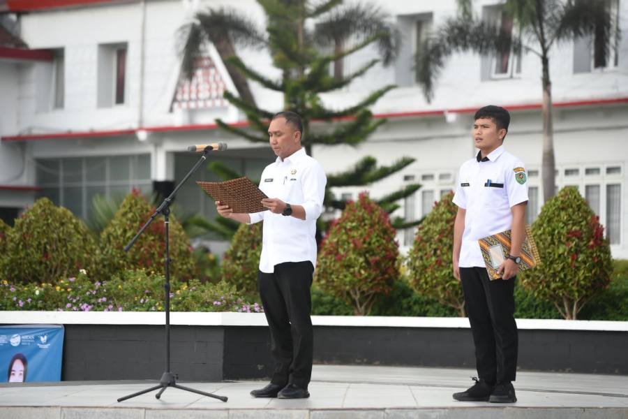 Tapsel, POL | Sekretaris Daerah ( Sekda) Sofyan Adil menjadi Inspektur upacara (irup) pada upacara perayaan Hari Koperasi Nasional (HKN) ke-76 tahun 2023 di lapangan Parade Perkantoran Pemerintahan Tapanuli Selatan, Sipirok, Rabu (12/7/2023), dihadiri Asisten, Staf Ahli Bupati, pimpinan OPD, Kabag, dan seluruh pegawai Pemkab Tapsel.