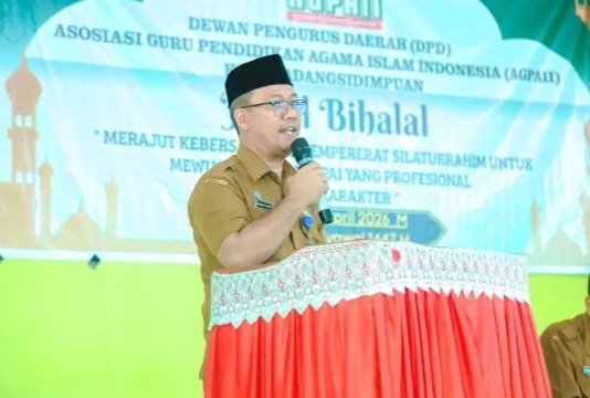 Padangsidimpuan, POL | Sekretaris Daerah Kota ( Sekdako) Padangsidimpuan, H. Rahmat Marzuki Nasution, SH, MH, CGCAE menghadiri kegiatan Halal Bihalal Dewan Pengurus Daerah (DPD) Asosiasi Guru Pendidikan Agama Islam Indonesia (AGPAII) yang digelar di Aula MAN 2 Padangsidimpuan (7/4/2026).