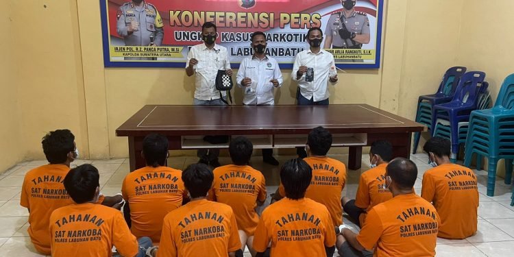 Kapolres Labuhanbatu AKBP Anhar Arlia Rangkuti, SIK melalui Kasat Narkoba AKP Martualesi Sitepu SH didampingi PS Kasi Humas Polres Labuhanbatu Iptu Agus menyampaikan terkait hasil ungkap kasus tindak pidana narkoba oleh Satres Narkoba dan Polsek jajaran Polres Labuhanbatu.