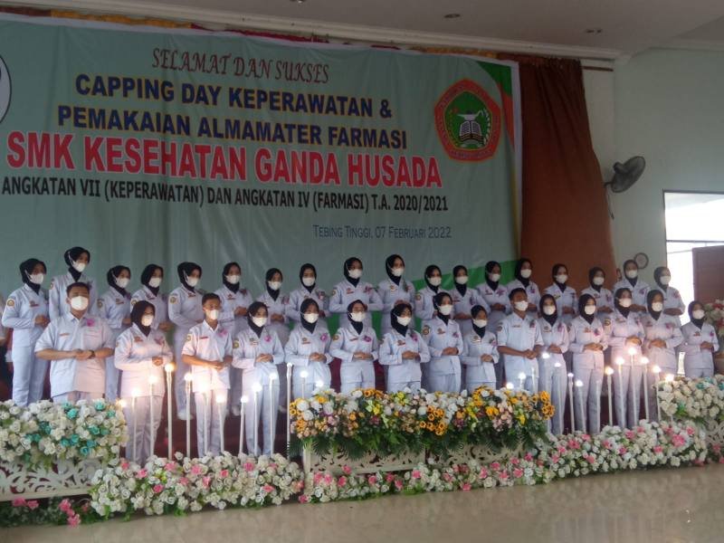 Tebing Tinggi, POL | Kegiatan Capping Day (Pemasangan Kap) bagi siswa-siswi kelas 11 prodi Keperawatan dan Farmasi pada SMK Ganda Husada di Jalan M.Yamin Kampung Keling Tebing Tinggi sukses dilaksanakan pada Senin (06/02/2022) di Wisma Manggapu Tua jln DR Hamka.