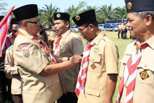 Sergai, POL | Bupati Serdang Bedagai Ir. H Soekirman hadiri upacara pelantikan pengurus kwartir ranting, mabigus dan pembina gugus depan di jajaran kwartir cabang gerakan pramuka serdang Bedagai Tahun 2019 bertempat di Lapangan Sepak Bola Deli Muda Hilir Kecamatan Perbaungan, Sabtu (6/4).