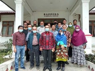 Rombongan Badan Perencanaan Pembangunan Daerah (Bappeda) Kabupaten Serdang Bedagai, H Prihatinah disambut Kepala Bappeda Samosir, Rudi Siahaan di perkantoran Bupati Samosir, Jln Rianiate, Pangururan, Jumat (04/12/2020).