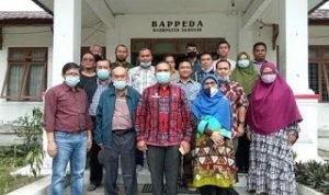 Rombongan Badan Perencanaan Pembangunan Daerah (Bappeda) Kabupaten Serdang Bedagai, H Prihatinah disambut Kepala Bappeda Samosir, Rudi Siahaan di perkantoran Bupati Samosir, Jln Rianiate, Pangururan, Jumat (04/12/2020).