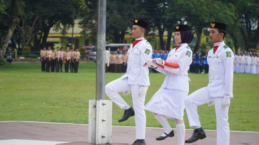 4.Petugas pengibar bendera 3 orang Purna Paskibraka Indonesia Kabupaten Langkat.