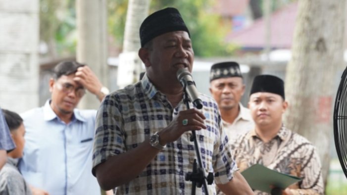 Langkat, POL | Jelang pergantian tahun baru 2022 ke 2023, Plt Bupati Langkat H Syah Afandin SH menyerahkan santunan kepada Guru Ngaji Kampung se-Teluk Aru, bertempat di Halaman Kantor Camat Sei Lepan, Kabupaten Langkat, Sabtu (31/12/2022).