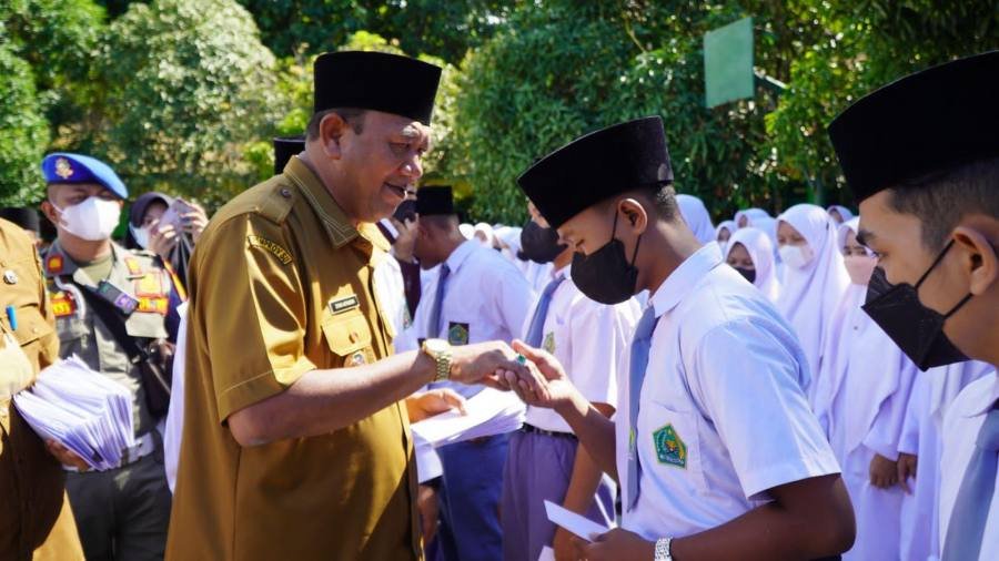 Syah Afandin turut menyerahkan bantuan kepada para siswa penerima tali asih.