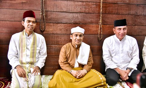 Langkat, POL | Gubernur Sumatera Utara (Sumut) Edy Rahmayadi dan Ustaz Abdul Somad (UAS) mendoakan kepulihan Tuan Guru Babussalam Zikmal Fuad. Doa ini mereka sampaikan usai kegiatan Tabligh Akbar Ustaz Abdul Somad di Besilam, Kabupaten Langkat, Sabtu (6/8/2022).