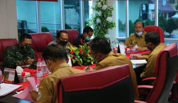 Rapat yang dipimpin Bupati Taput Drs. Nikson Nababan, MSi dihadiri antara lain Ketua DPRD Taput Poltak Pakpahan, Kapolres Horas Marasi Silaen, Dandim 0210/TU Roni Agus Widodo dan Kajari Tatang Darmi antara lain membahas tindak lanjut penanganan COVID-19.