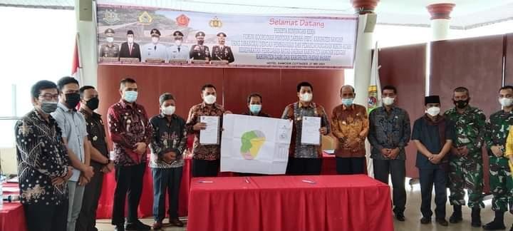 Kesepakatan ditandai penandatanganan berita acara kesepakatan penegasan tapal batas dalam rangkaian acara kunjungan kerja FKPD Samosir dan penegasan tapal batas di Hotel Samosir Cottages,Kamis ( 27/05/2021).
