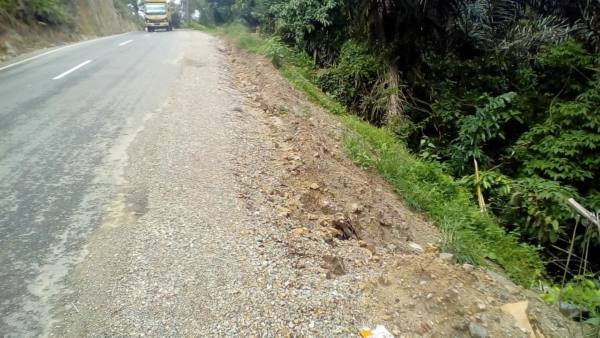 Investigasi yang dilakukan POL bersama sejumlah aktivis LSM yang peduli terhadap pembangunan infrastruktur di lokasi proyek, Sabtu (12/10/2018) menemukan sejumlah titik rawan longsor pada bentang jalan yang baru saja selesai dihotmix. Pada ruas jalan yang ternyata tidak memiliki tembok penahan tersebut memperlihatkan sebahagian material basecouse di bahu jalan telah digerus aliran air hujan. Padahal basecouse tersebut baru seminggu selesai dihampar dan dipadatkan.
